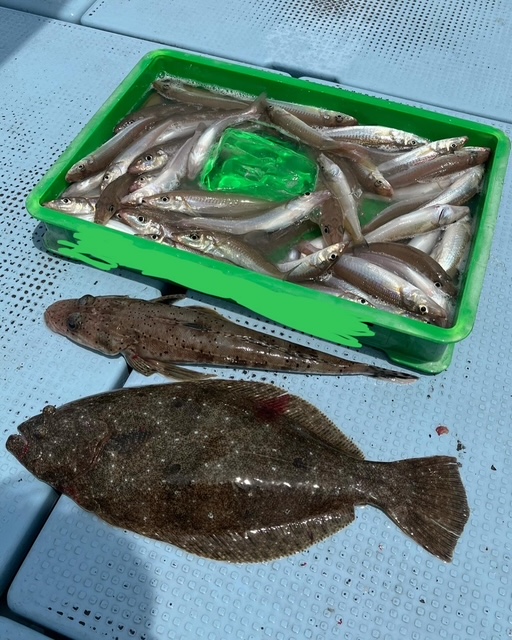 本日は単独でのチャーターご利用でした。狙いはキス、ヒラメでした。釣果はお魚のご機嫌もよくお客様の健闘もありでキスも良型が多く60~70尾程、ヒラメは狙った時間も短かったもののどうにか1枚💦ほっ・・・よかった☺