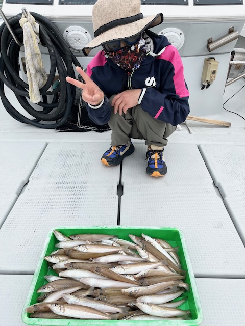 船キスの下見釣行を相方としてきました☆今シーズン初でしたので魚の反応が気になり少々、竿を出しましたが私も小気味よい引き味を楽しむ事ができました✨釣果は18~22センチくらいを相方が3時間程で60~70尾上げて私が空き時間に40尾ほど手伝いましのでざっくりですが余裕の三桁超え(プチ大漁♪)で、その他は巨大なエイでした♪これから船キスはハイシーズンとなりファミリーでも楽しめます♪レンタルタックルも準備できますのでご気軽にお越しくださいませ✨このキス釣りには船釣りの基本作法(動作)が詰まっていると思います。釣りを1から始める方々、先ずはキス釣りからどうでしょうか?極めると面白みが増す釣りでもあります♪ですので船長おススメです💕